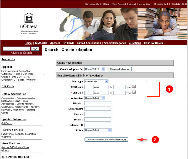 To search for an existing edoption enter the required information(*) into the appropriate fields. (1)